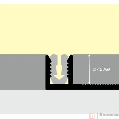 Данный профиль с Т-образным профилем позволяет закрыть швы любых покрытий высотой не более 12-15 мм.