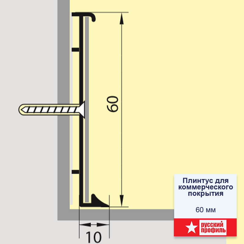 Плинтус для коммерческого покрытия 60 мм 2,5м анод. сер. мат., , шт