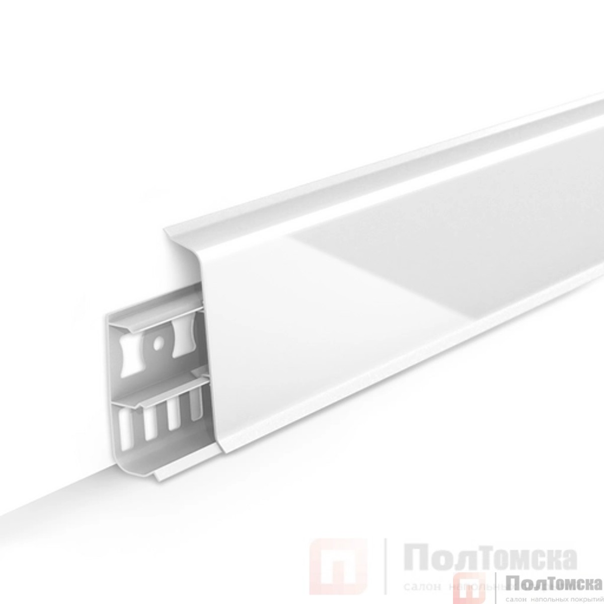 Простой монтаж: Плинтус легко крепится к стене, а мягкий край (прорезиненная кромка) обеспечивает герметичность примыкания.