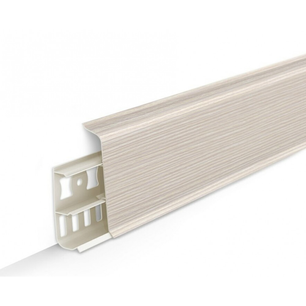 Плинтус Deconika 70мм — это классическое решение для пола с реалистичной древесной текстурой и продуманной системой прокладки коммуникаций. Благодаря высоте 70 мм и мягкому краю он плотно прилегает к поверхностям, скрывая неровности стен и защищая стыки от пыли