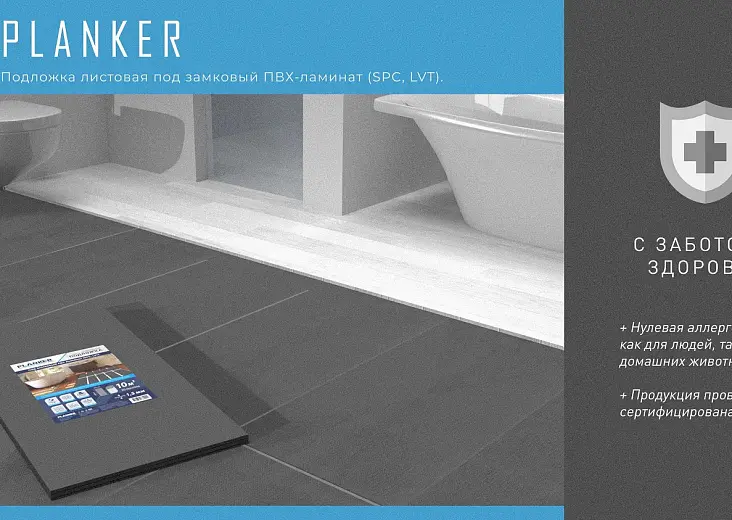 Подложка Planker листовая под замковый ПВХ-ламинат (SPC, LVT) 1.5 мм